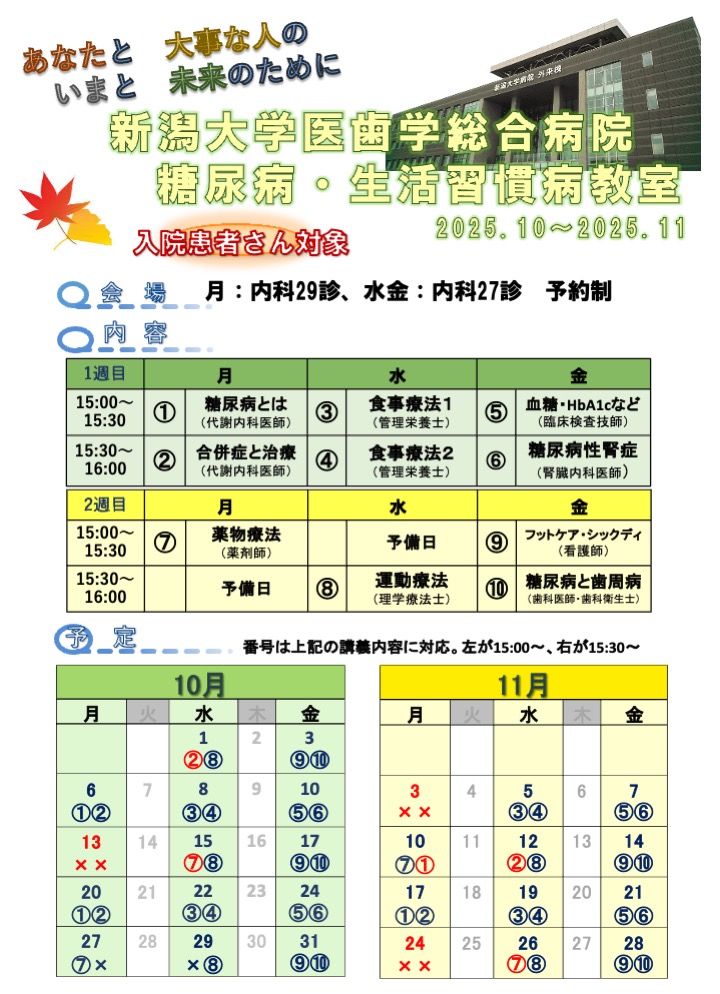 糖尿病・生活習慣病の患者さんを対象とした教室を