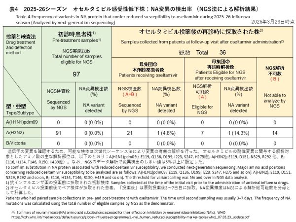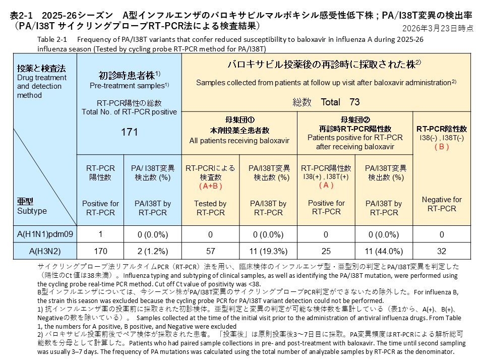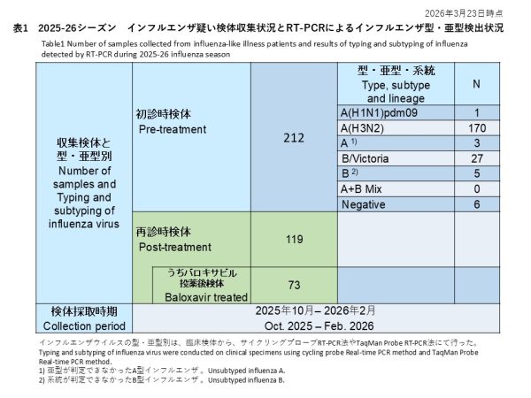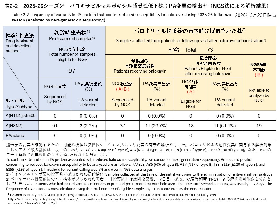 2025-2026年シーズンの日本におけるインフルエンザ流行株と抗インフルエンザ薬感受性低下株調査の概要(2026年3月23日時点)