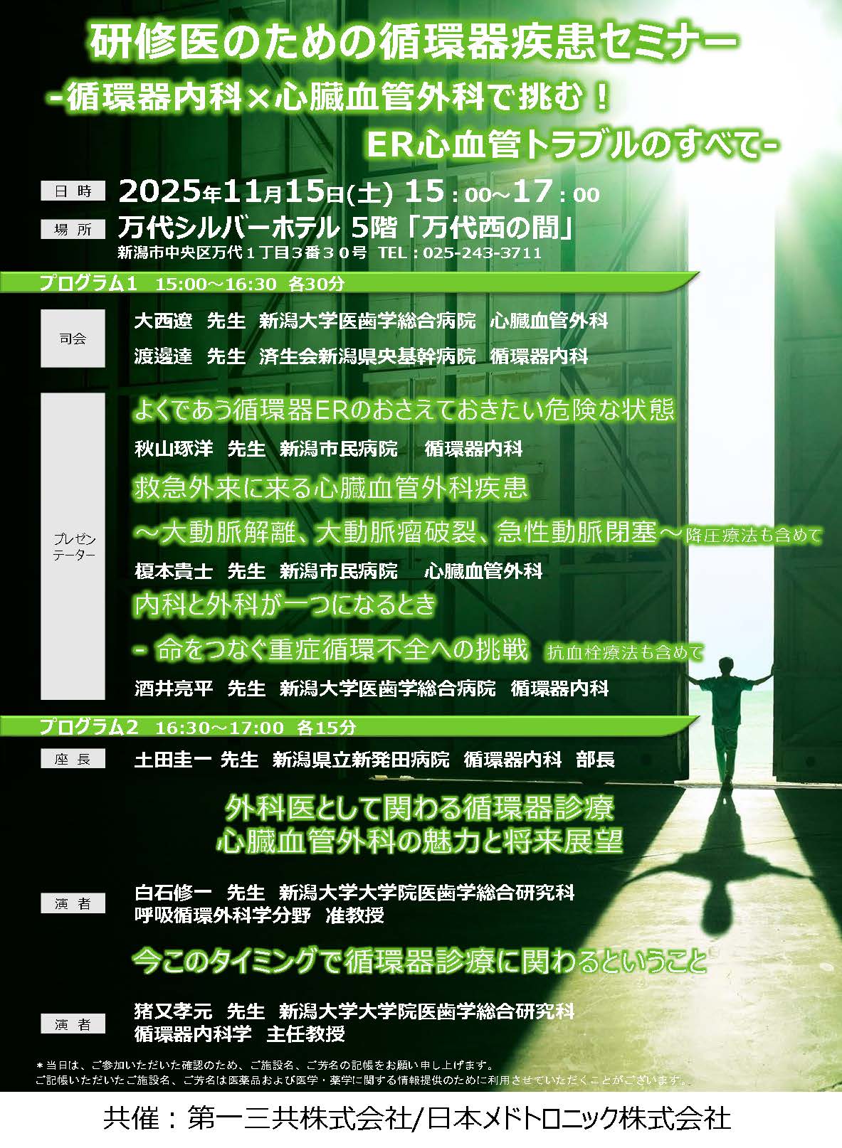 11/15(土)研修医のための循環器疾患セミナーが開催されます。