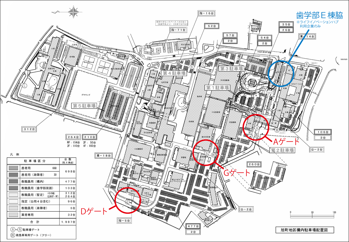 歯学部E棟脇駐車場※:年額21,600円(満車時はA・Dゲートを利用)