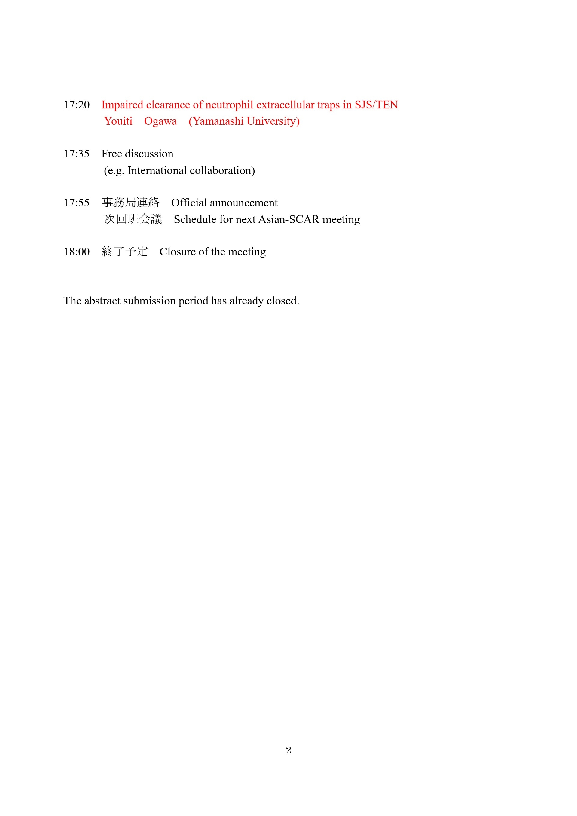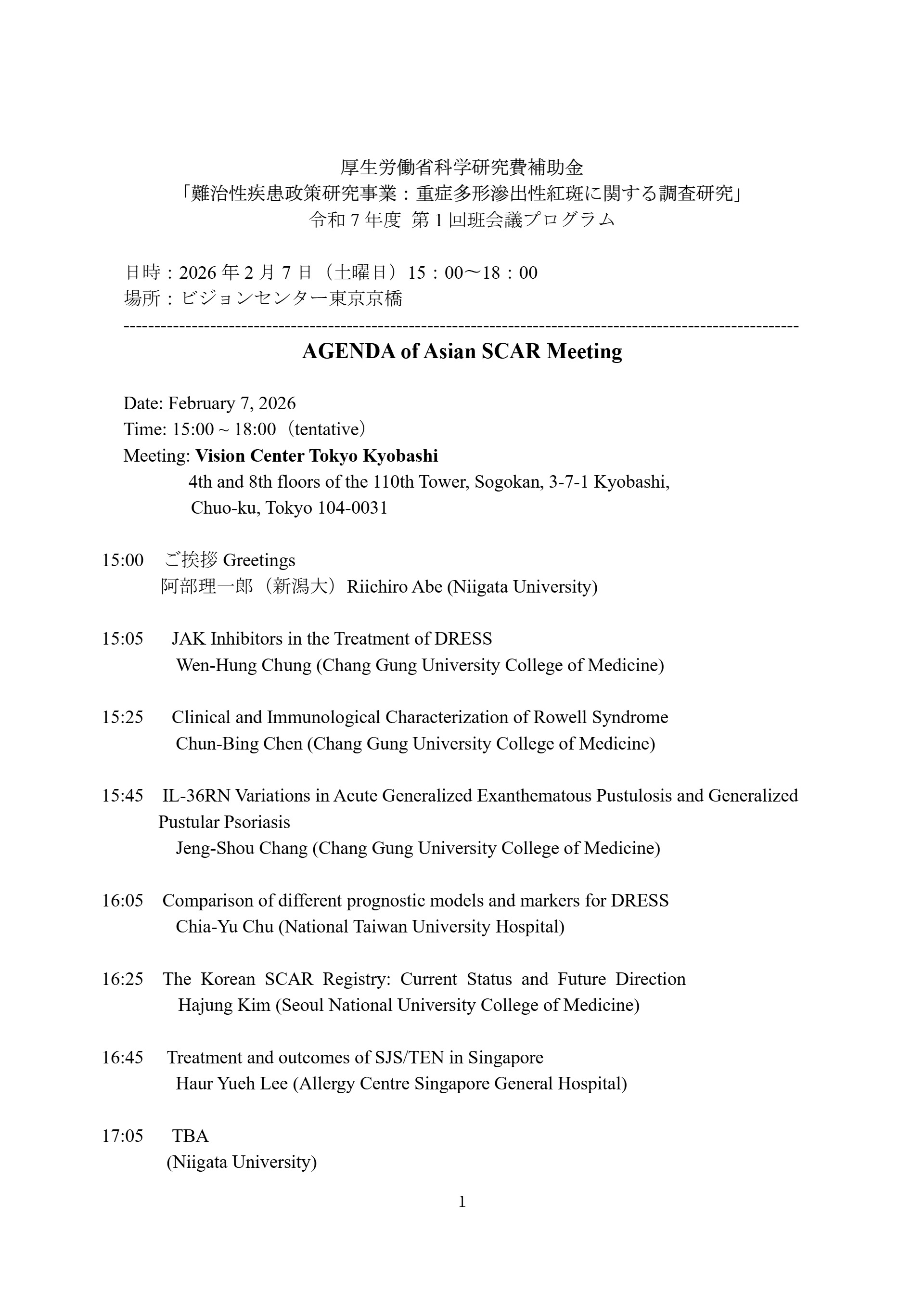 AGENDA of Asian SCAR Meeting 2026