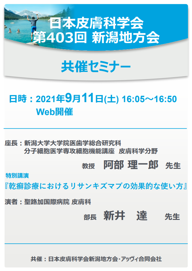 第403回地方会 9月11日特別講演 新井 達先生(聖路加国際病院 皮膚科)