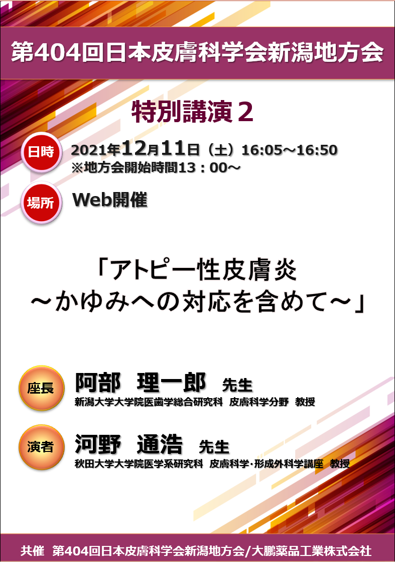 第404回 12月11日地方会 特別講演 河野 通浩 先生(秋田大学大学院医学系研究科 皮膚科学・形成外科学講座) 第404回 12月11日 地方会 河野 通浩 先生(秋田大学大学院医学系研究科 皮膚科学・形成外科学講座)