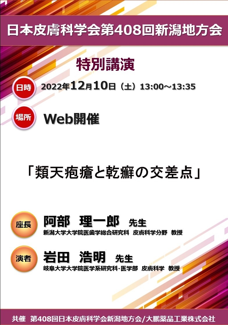 第408回12月10日地方会 特別講演 岩田 浩明 先生(岐阜大学大学院医学系研究科・医学部 皮膚科学 教授) 第408回 12月10日 地方会 特別講演 岩田 浩明 先生(岐阜大学大学院医学系研究科・医学部 皮膚科学 教授)