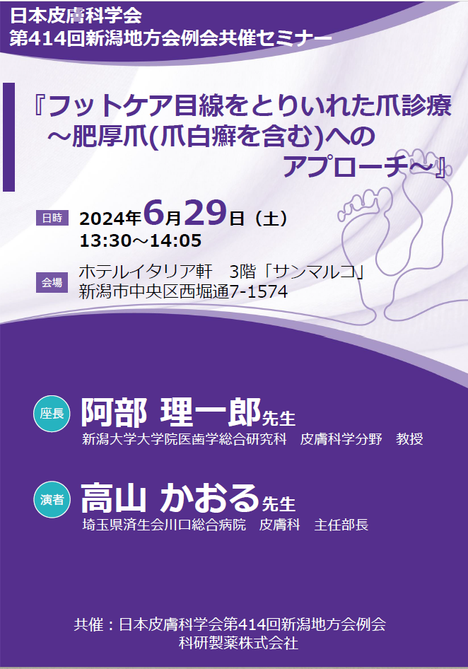 第414回 6月29日 地方会 特別講演 高山 かおる 先生(埼玉県済生会川口総合病院皮膚科 主任部長)