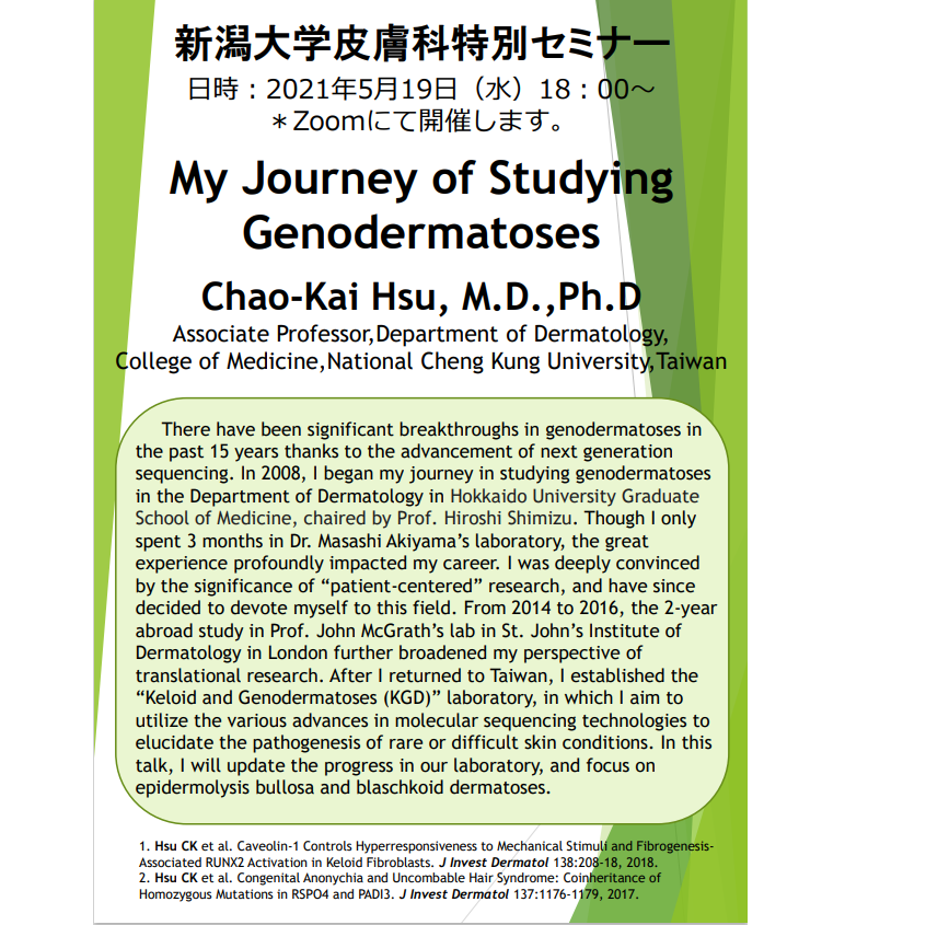 Web特別講演 Chao-Kai Hsu先生(Associate Professor, Department of Dermatology, National Cheng Kung University, Taiwan) 関連資料 Web特別講演:Chao-Kai Hsu先生(Associate Professor, Department of Dermatology, National Cheng Kung University, Taiwan) 教育講演案内一覧へ戻る