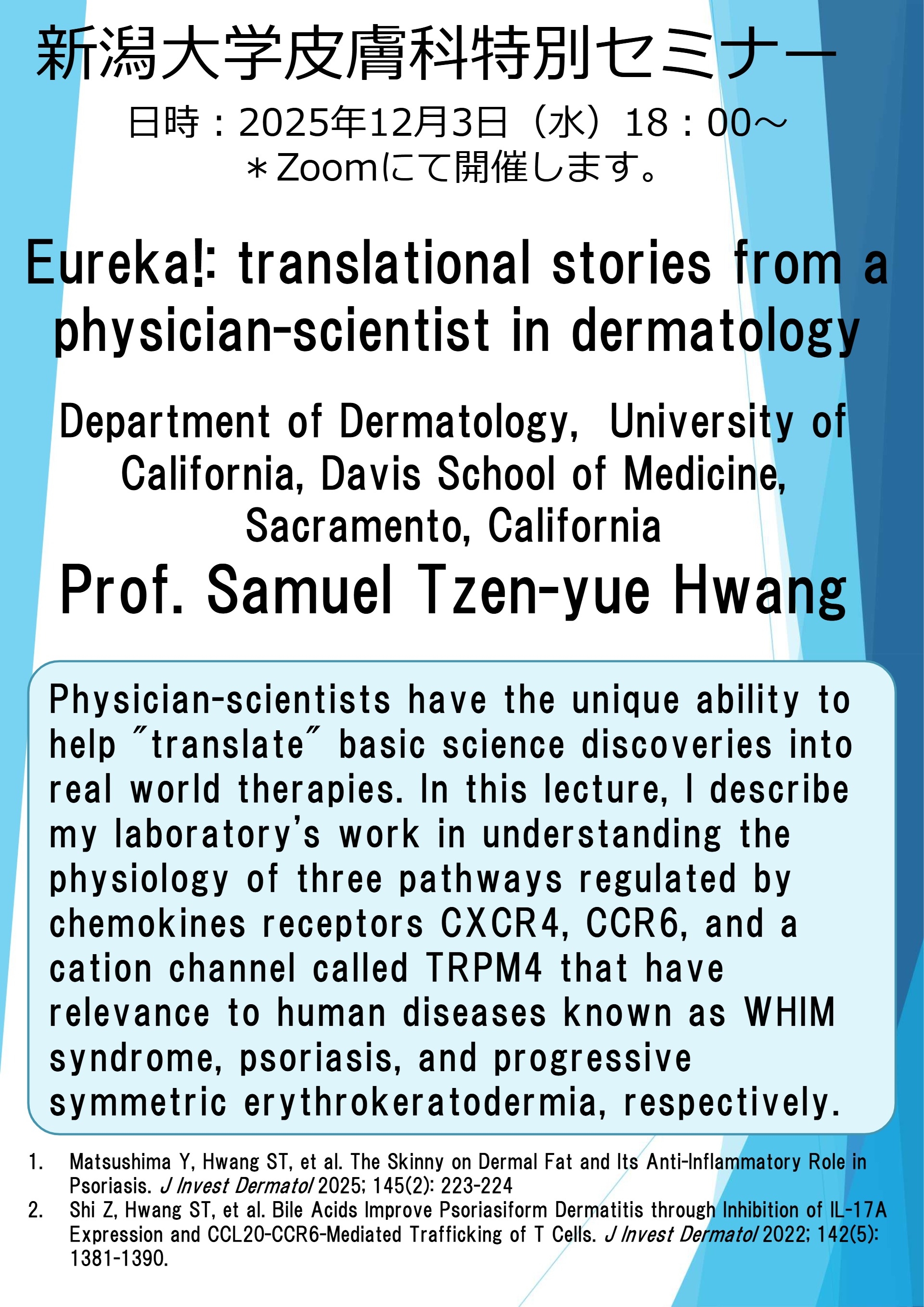Web特別講演 Prof. Samuel Tzen-yue Hwang (University of California, Davis School of Medicine, Sacramento, California) 関連資料 教育講演案内一覧へ戻る
