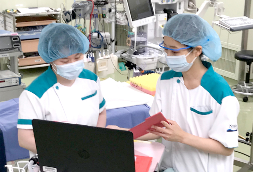 手術部は教育体制が整備されており、育成プログラブに沿って支援を受けながら手術室看護師として成長することができます。緊張感のある場面も多い部署ですが、安全に、かつ患者さん本位の倫理的配慮がなされた医療が提供されるように、チームで協力しながら取り組んでいます。私たちと一緒に手術看護専門領域を学び、患者さんのニーズに応じた周術期看護を実践しませんか。お待ちしております。
