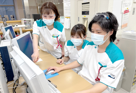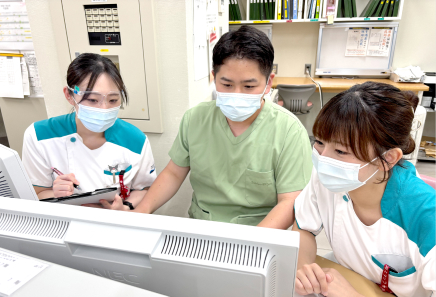 東7階病棟では、主に手術などの急性期看護、化学放射線療法での慢性期看護、また終末期看護など経験できます。病棟ではパートナー制を取り入れており、新人さんへの指導も丁寧に行われています。皆で声を掛け合いながら患者さんに寄り添った質の高い看護を心がけています。皆さんも一緒に学びながら働いてみませんか?