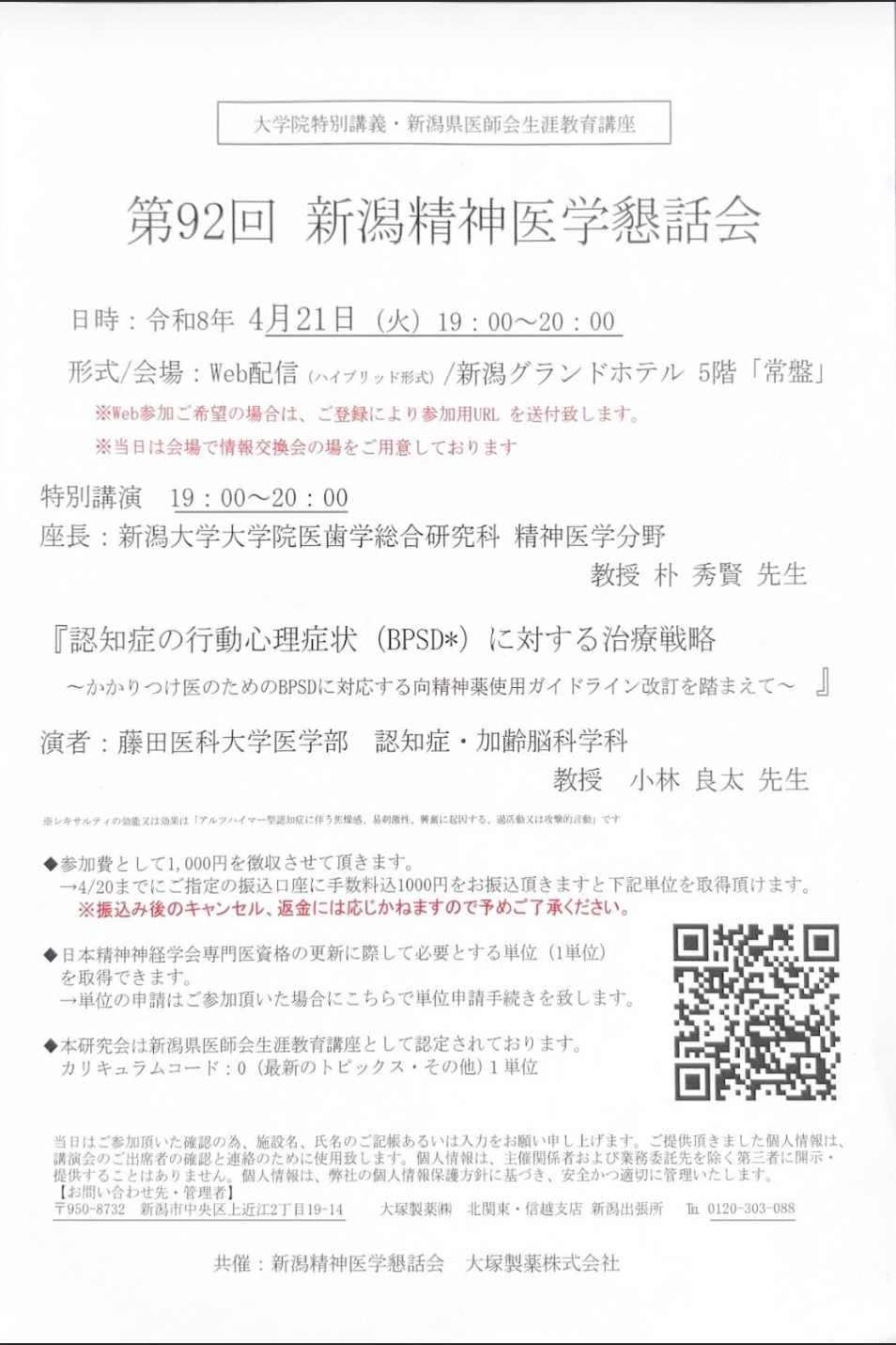 2026年4月21日(火) 第92回 新潟精神医学懇話会(認知症BPSDの治療戦略)PDF