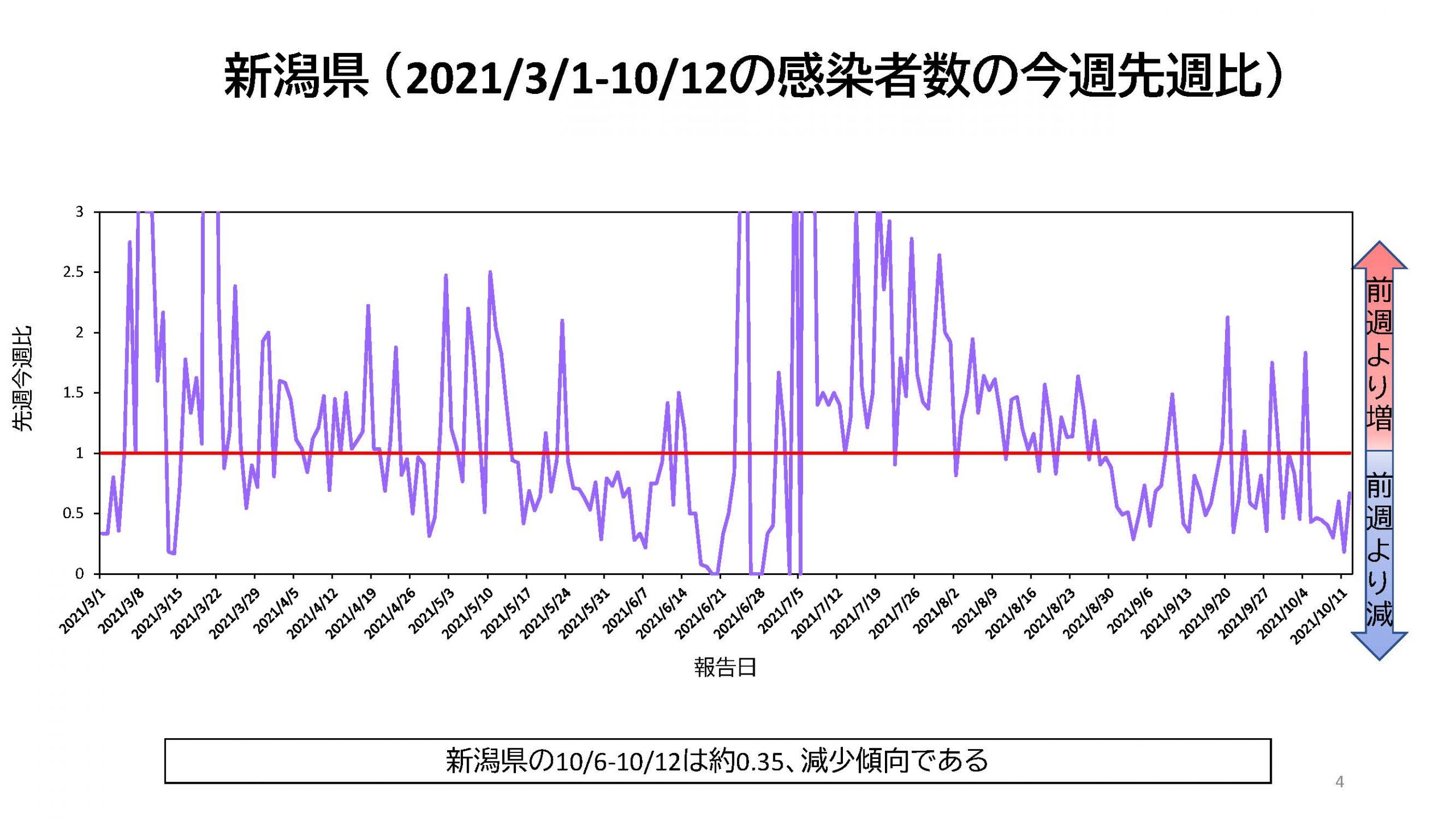 新潟市:10/6-10/12 最高値0.64 平均値0.35(減少傾向)前回更新より減少↓