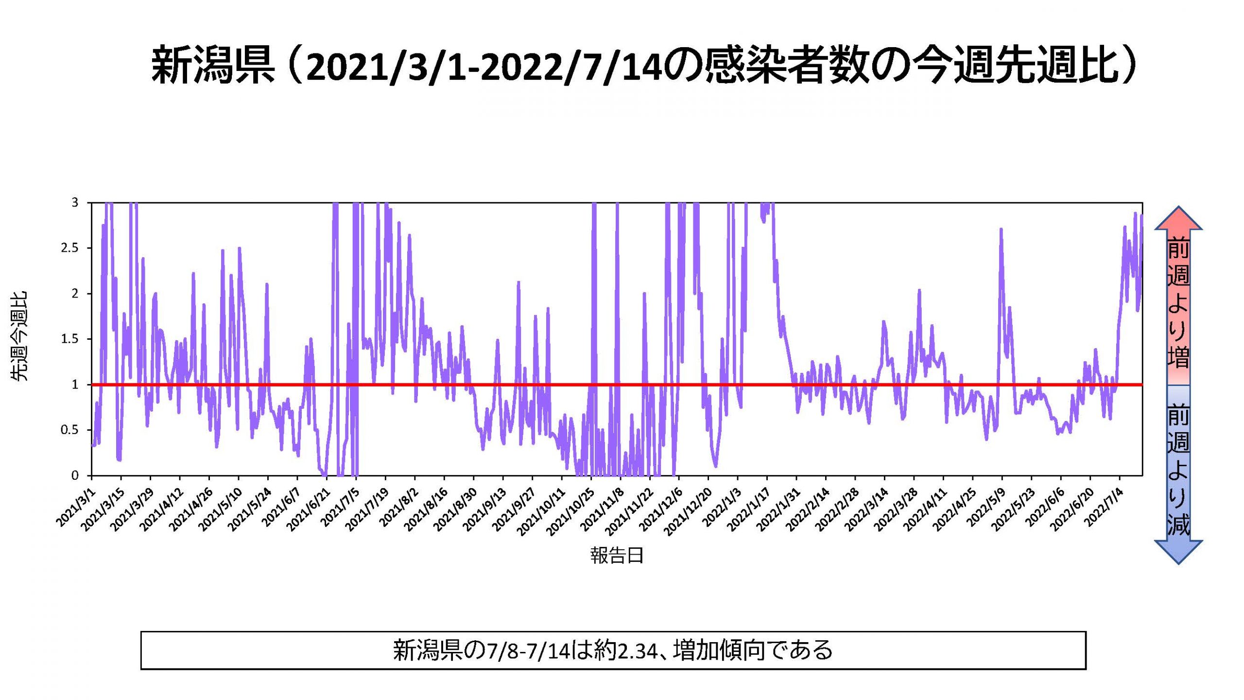新潟市:7/8-7/14 最高値2.30 平均値1.39(増加傾向)前回更新より増加↑