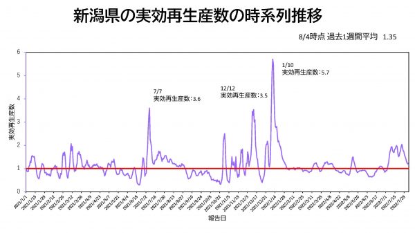 新潟県および新潟市の新型コロナの実効再生産数の推定(2022年8月5日)
